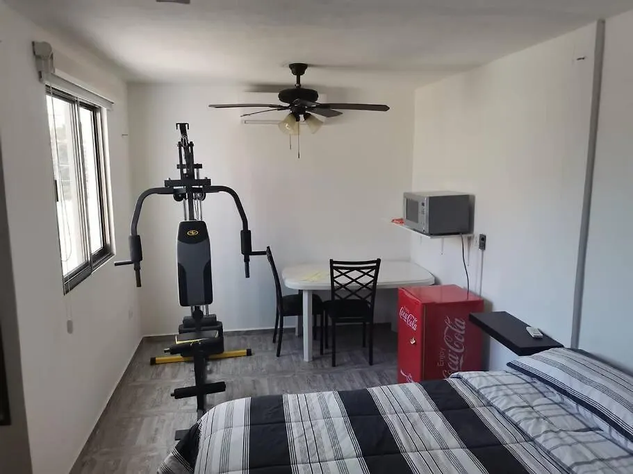 The 1-room Gran Plaza, Cancun apartment is located in Downtown Cancun, which is also during universities' spring break period, 6 minutes' walk from La Gran Plaza.